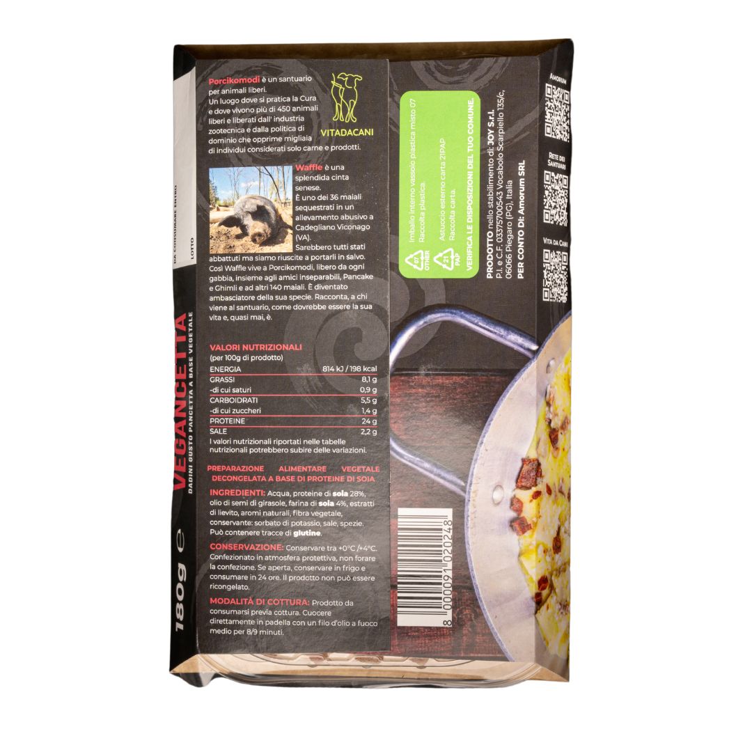 La Vegancetta è l’alternativa vegetale alla pancetta, dal sapore affumicato e perfetta per dare croccantezza alle preparazioni.